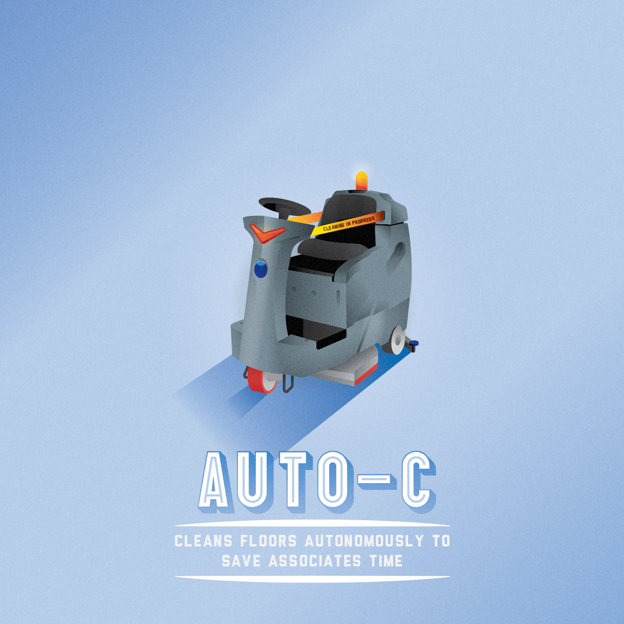 오토-S는 매장 선반에 진열된 상품들을 스캔해, 재고 상황과 배열 위치, 가격 등의 정보를 수집하는 로봇으로, 미국 내 매장에 300대가 추가로 배치된다. 오토-C는 바닥 청소용 로봇이다. 약 1,500개 매장에 배치된 오토-C는 매장 통로를 오가며, 바닥을 청소하고 광을 내도록 프로그래밍 되어 있다. 한 사람의 작업자가 2~3시간 걸리던 일을 오토-C가 대신할 수 있게 되면서, 그만큼 시간과 비용을 절감할 수 있게 된 것이다.