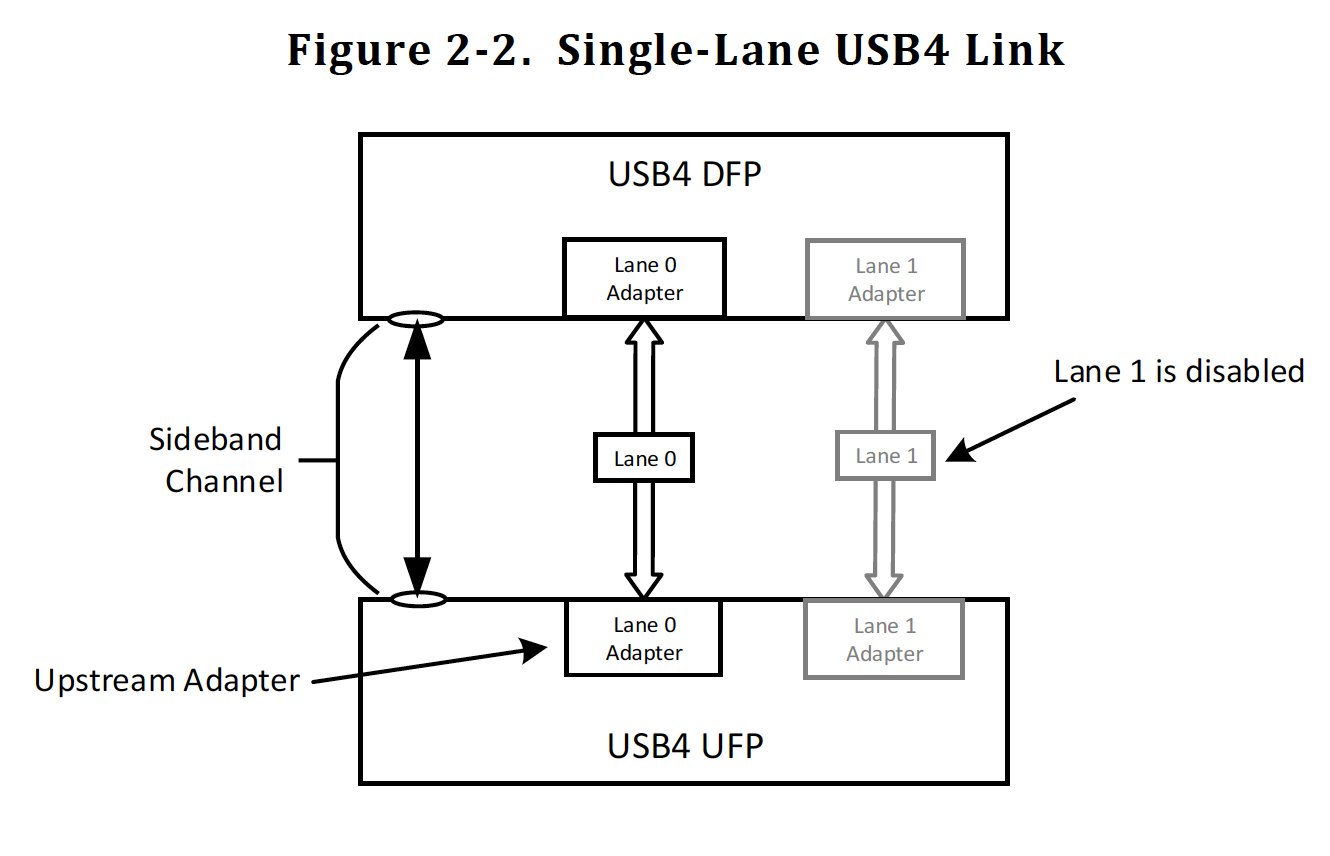 USB4에서는 40Gbps의 데이터 전송이 인증된 하나의 USB-C 케이블이나, 기존의 USB-C 케이블을 듀얼-레인으로 연결해 최대 40Gbps의 데이터를 전송할 수 있다.(자료:USB-IF)