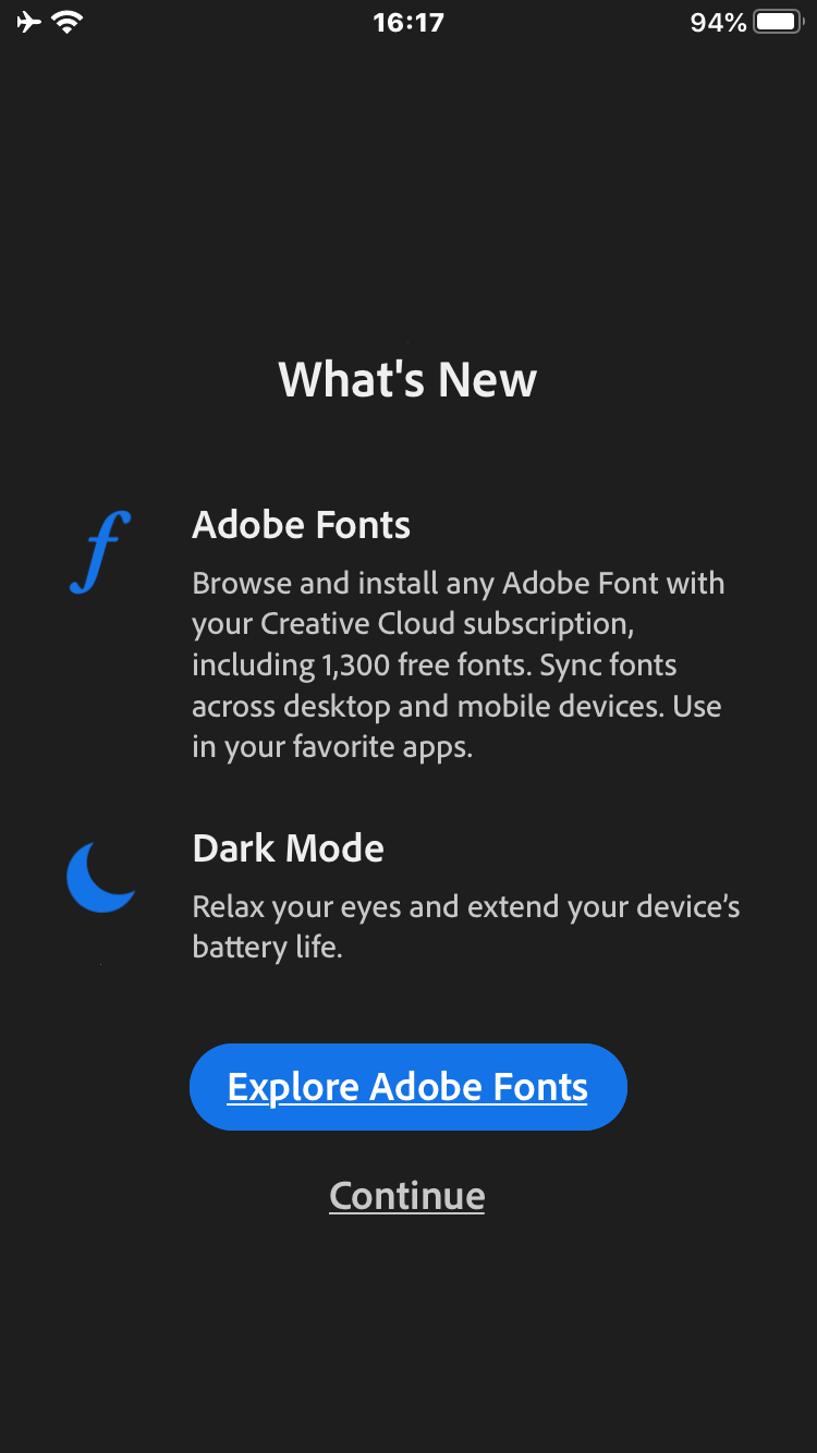아이폰(iOS 13.1 이상)과 아이패드(iPadOS 13.1)에서 어도비의 크리에이티브 클라우드 모바일 앱을 활용해 다양한 종류의 폰트를 간편하게 다운로드받아 사용할 수 있다. 크리에이티브 클라우드 무료 계정 사용자는 약 1,300개, 구독 서비스를 이용하는 유료 사용자는 약 1만 7,000개의 글꼴을 활용할 수 있다.(화면:어도비 블로그)