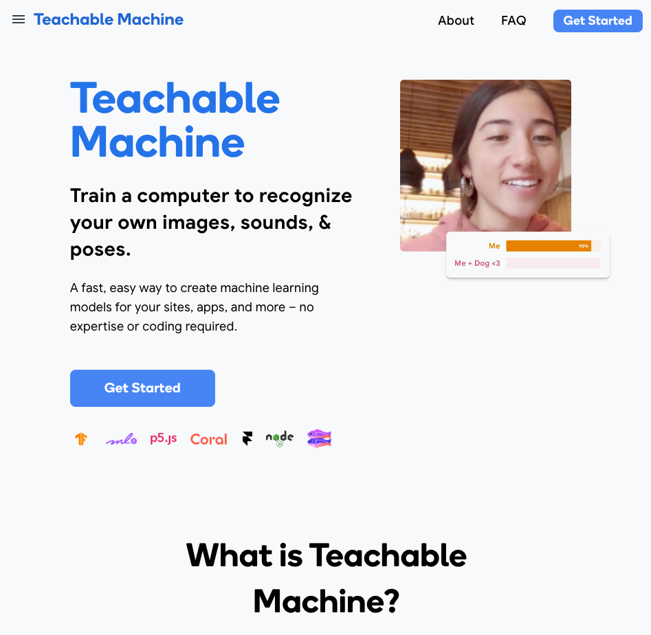 이번에 공개한 티처블 머신 2.0은 기존에 이미 활용되고 있던 티처블 머신의 업그레이드 버전이다. 티처블 머신은 웹캠으로 촬영한 이미지를 인식하고 학습하며, 사람들이 머신 러닝 모델을 훈련시키는 과정을 경험하도록 했다. 이를 활용해 이미지의 데이터 패턴을 인식하고, 인식한 이미지를 해당하는 카테고리에 할당하는 방법으로 머신 러닝 학습을 할 수 있도록 했었다.