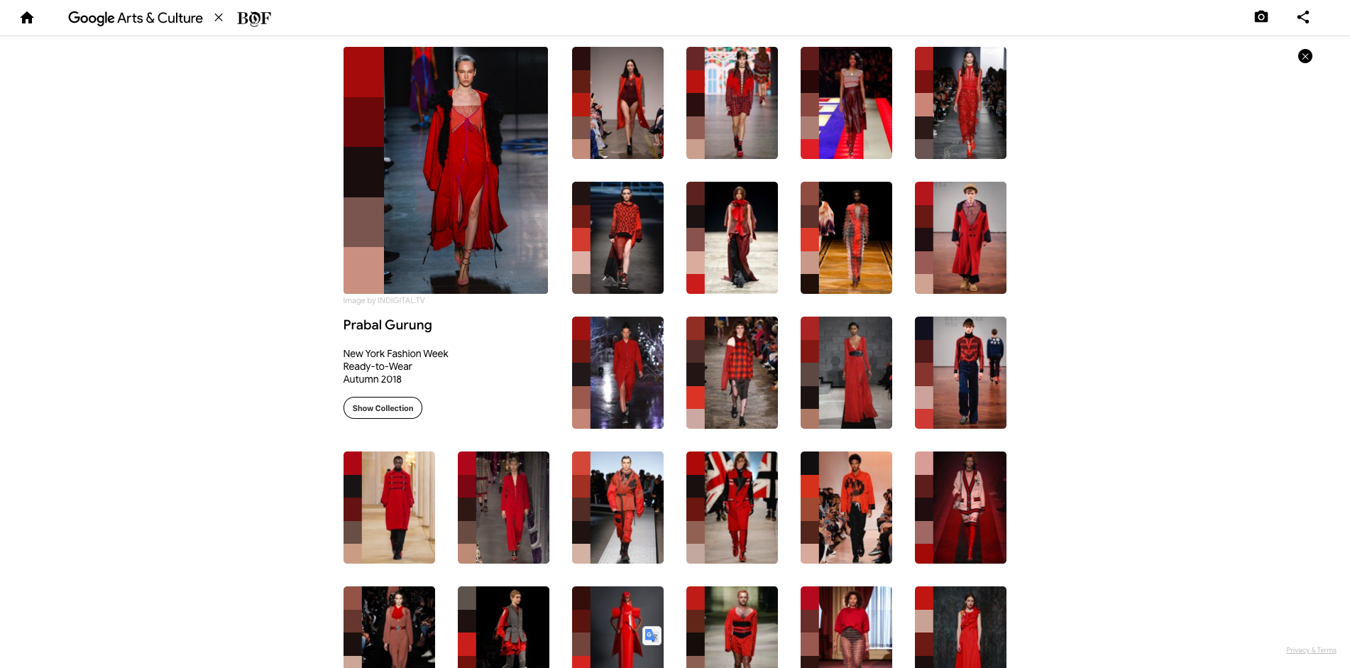 이렇게 색상 팔레트로 시각화한 데이터를 활용해, 전 세계 패션 위크에서 나오는 색상, 디자이너, 계절 및 트렌드를 탐색할 수 있다. 따라서 2017년 가을에는 어떤 색상이 유행했는지, 그때 디자인 트렌드는 어떠했는지를, 또 다른 형태의 패션쇼를 보는 것처럼 편리하고 쉽게 알아볼 수 있다. 만약 인공지능의 도움이 없었다면, 이러한 방법으로 패션 데이터를 분류하는 것이 가능했을까 하는 생각을 갖게 될 정도로, 방대한 데이터와 시각화해서 데이터로 만든 색상 정보가 돋보이는 프로젝트다.