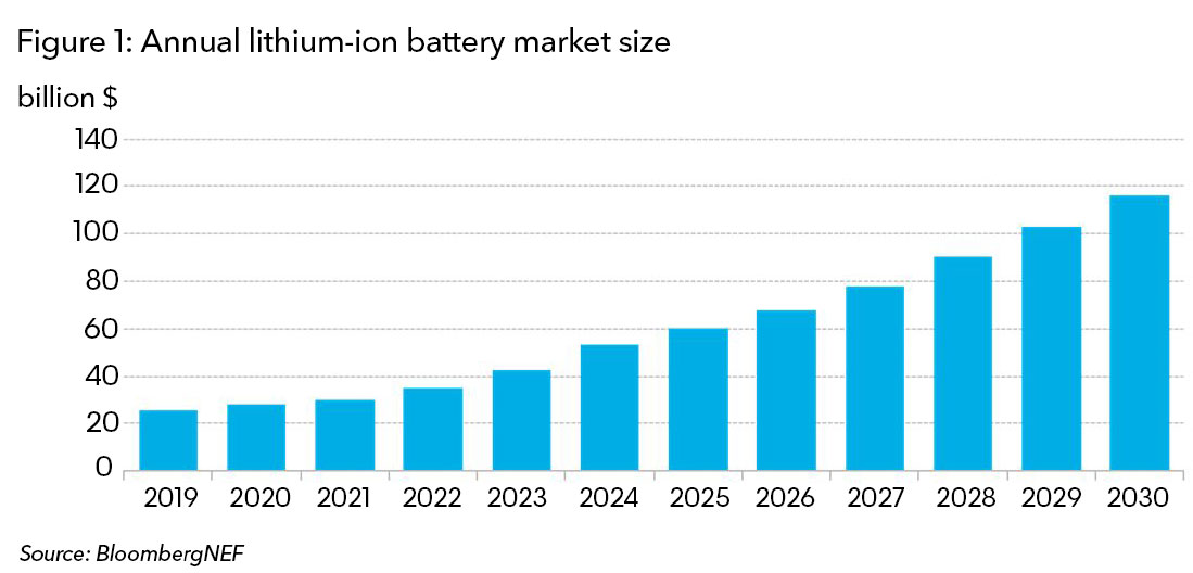 리튬이온 배터리 가격 하락은 배달용 밴과 같은 상용 차량의, 전기자동차 전환 시점을 빠르게 앞당기고 있다. 보급형 전기 자동차의 대중화 시점을 좌우하는 것도 리튬이온 배터리 가격이다. BNEF의 수석 에너지 저장 분석가(senior energy storage analyst)인 제임스 프리스(James Frith)는 2030년까지 리튬이온 배터리 시장이 1,160억 달러에 달할 것이라고 밝혔다.