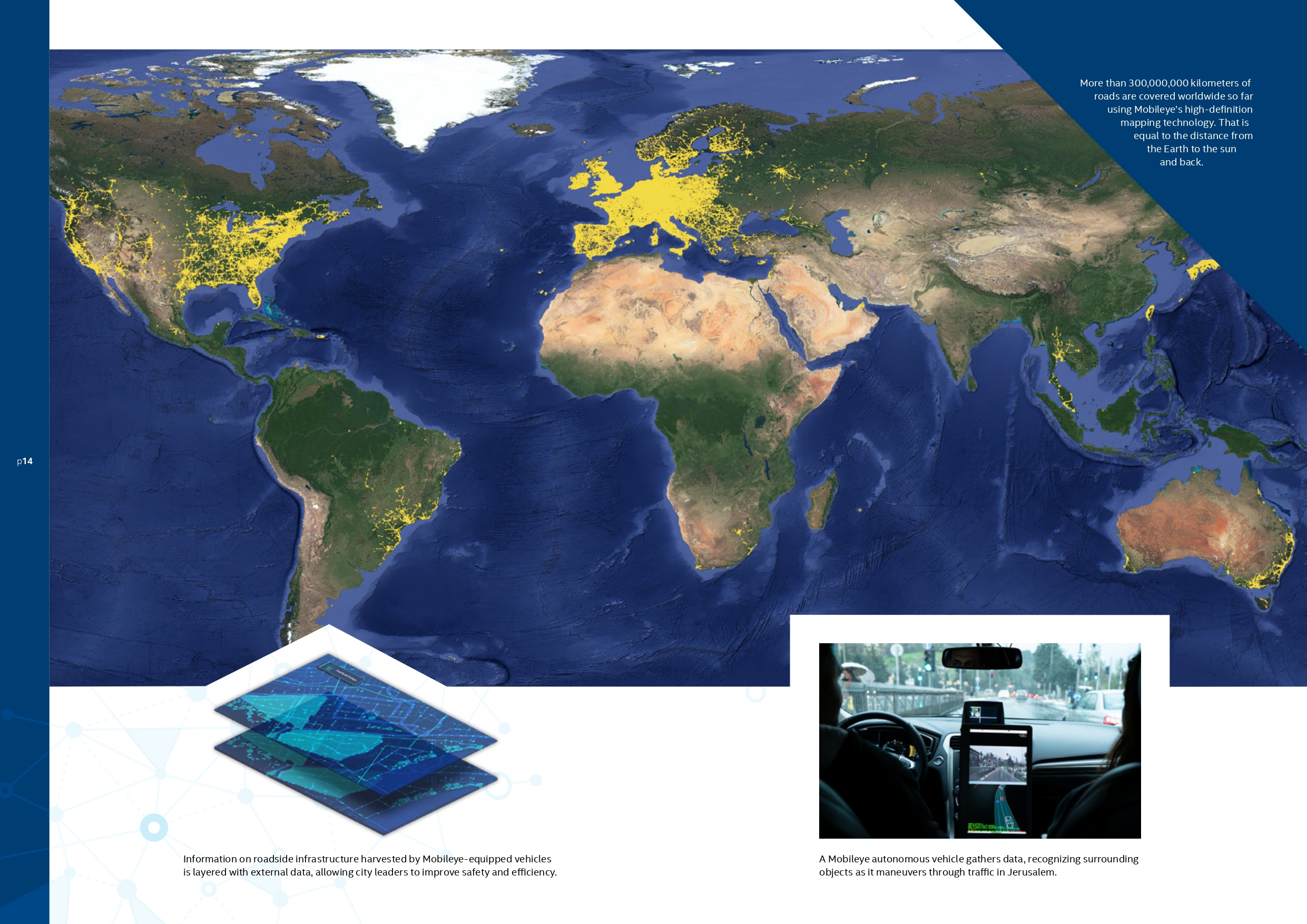 인텔의 자회사 모빌아이(Mobileye)는 공상 과학 소설에서 나올 만한 자율주행차 기능을 현실에서 구현할 수 있는 기술을 공개했다. 모빌아이는 자사 첫 투자자 서밋을 개최해 전 세계를 지도화해 자율주행 로보택시를 구현하고 운전자 보조 시스템(ADAS)을 통해 사람을 구하겠다는 포부를 밝혔다. 해당 서밋에 참석한 애널리스트들은 예루살렘에서 가장 운전하기 어려운 지역에서 운행하는 도심 자율주행차를 먼저 경험하기 위해 앞다투어 시험 주행 차량에 몰려들었다. 오직 카메라 센서만을 이용한 자율주행차는 능숙하게 차도를 주행하고 보행자에게는 양보하는 등의 뛰어난 운전실력을 선보였다.