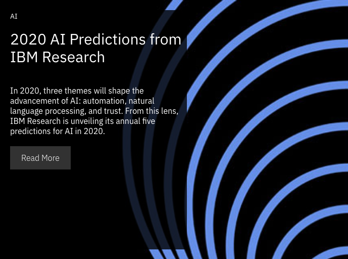 IBM 리서치가 '2020년 AI 예측’을 블로그 통해 공개했다. 내년에는 자동화, 자연어 처리, 신뢰가 AI 기술을 견인할 것으로 전망하고, AI와 관련된 5가지 예측 내용을 스리람 라가반 AI 부사장이 블로그를 통해 소개했다.(화면:IBM Research Blog)