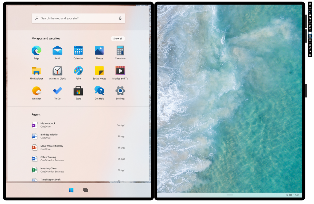 두 개의 디스플레이를 활용하는 듀얼 스크린은 다양한 방법으로 앱을 활용할 수 있어, 단순하게 디스플레이 화면을 넓게 쓰는 것 이상의 효과를 얻을 수 있다. 마이크로소프트가 공개한 듀얼 스크린 경험을 보면, 하나의 앱을 두 개의 디스플레이에 확장해서 볼 수 있는 확장 화면(Extended Canvas), 앱의 특정 부분이나 정보를 확대하거나 상세하게 볼 수 있는 메인과 보조(Master - Detail), 서로 다른 화면을 양쪽에서 볼 수 있는 듀얼 뷰(Dual View) 등의 새로운 활용이 가능하다.