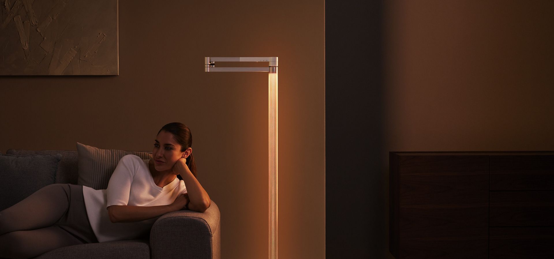 간접 조명(Indirect light)은 회전하는 헤드부분을 천장, 벽, 바닥 등을 비출 때 활용한다. 작업 조명(Task light)은 책을 보거나 일을 할 때, 밝고 충분한 양의 빛이 필요할 때 사용한다. 전시 조명(Feature light)은 그림이나 인테리어 소품처럼 특별하게 강조하고 싶은 물건이나 위치가 있을 때 유용하다. 무드 조명(Ambient light)은 마치 촛불처럼 따스하고 은은한 오렌지 불빛과 함께 휴식을 취하고 싶을 때 요긴하다.