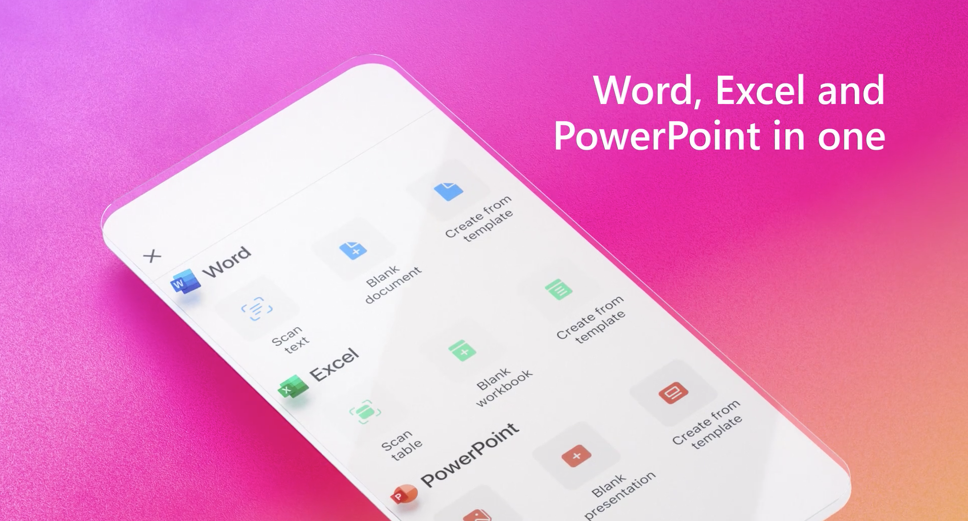 마이크로소프트가 안드로이드와 iOS 버전용 ‘마이크로소프트 오피스’ 정식 버전을 발표했다. 마이크로소프트 오피스 앱은 스마트폰용 워드, 엑셀, 파워포인트 앱을 하나로 통합하고, 이미지 캡처, 빠른 메모 작성, PDF 변환 등의 기능을 새롭게 추가했다. (화면:Microsoft 동영상 캡처)