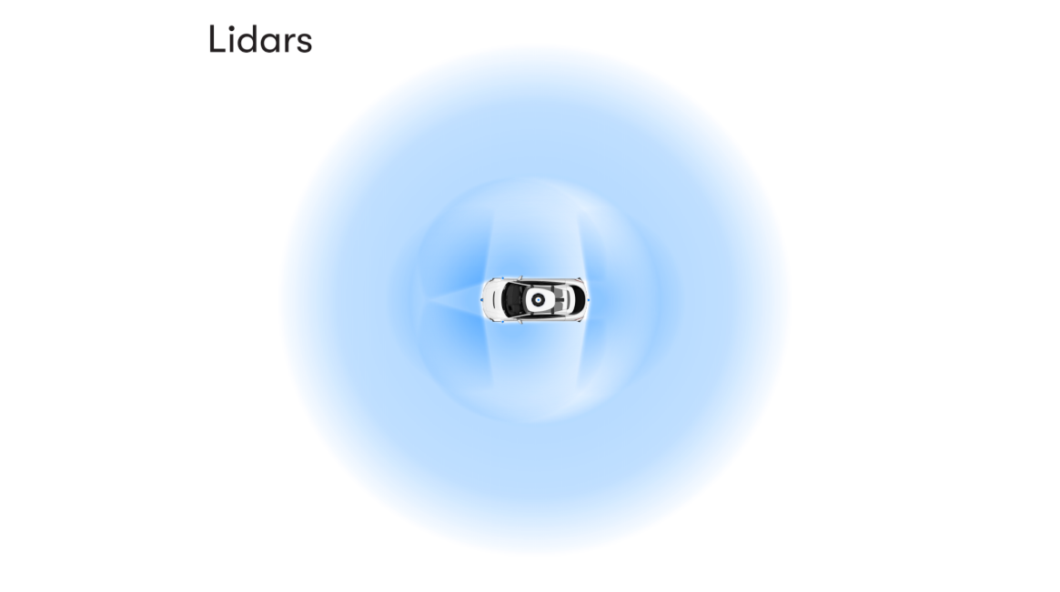 웨이모의 5세대 라이더는 360도 전 방향에 걸쳐 스캔 작업을 수행하는 360 라이더와 자동차 측면 4곳에 배치되는 주변 라이다(perimeter lidars)가 있다. 360 라이더는 근거리부터 300m 거리의 상황과 물체를 식별하고, 주변 라이다는 가까운 거리를 탐색하는 데 사용한다. 가까운 거리를 스캔하는 근접 라이다는 도심에서의 복잡한 교통 상황이나 언덕이 많은 지형의 사각지대를 커버할 수 있는 향상된 공간 해상도와 정확도를 제공한다.