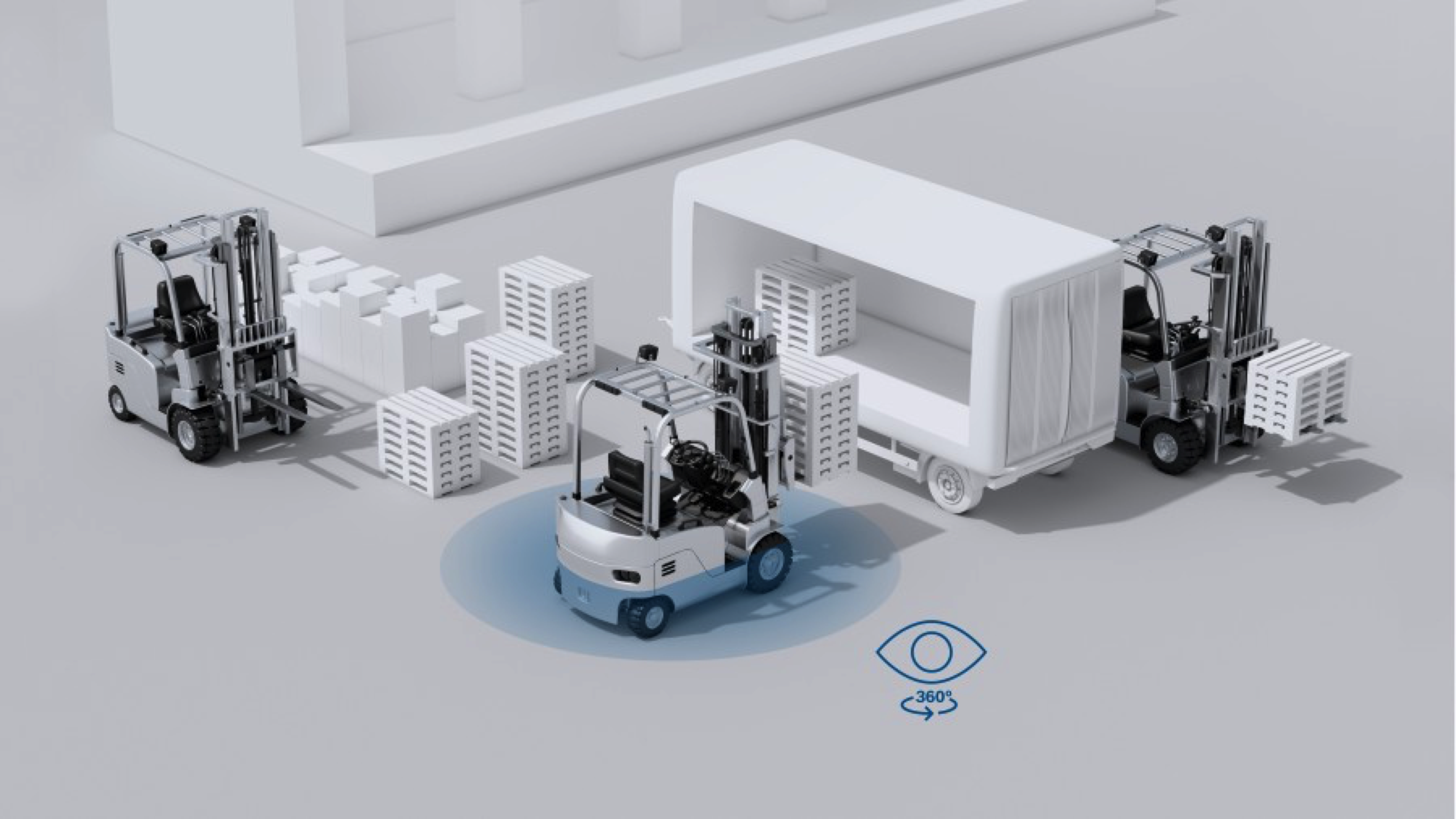 보쉬의 멀티 카메라 운행 보조 시스템을 지게차에 적용할 경우, 안전성과 조작성을 획기적으로 개선할 수 있다. 오직 사람 눈에 의지해서 운전과 조작을 하던 지게차에, 사각지대까지 속속들이 볼 수 있는 카메라를 활용할 수 있기 때문이다. 충돌 경고 운행 보조 시스템은 4개의 소형 근거리 카메라와 제어장치로 구성된다. 지게차 상단부에 설치하는 카메라는 360도 전 방향을 모니터할 수 있고, 카메라로 촬영한 영상은 디스플레이를 통해 운전자가 볼 수 있다.