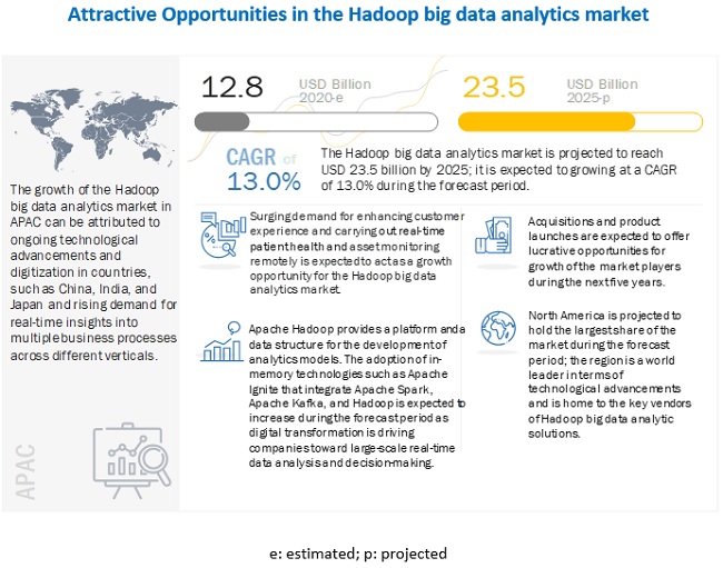 하둡(Hadoop) 빅데이터 분석 시장 규모가 2025년까지 13%의 연평균복합성장률을 기록하며 성장할 것이라는 분석이 나왔다. 마켓앤마켓이 발표한 ‘2025년까지 하둡 빅데이터 분석 시장(Hadoop Big Data Analytics Market - Global Forecast to 2025)에 따르면, 2020년 128억 달러이던 시장 규모는 2025년이 되면 235억 달러로 증가할 전망이다.