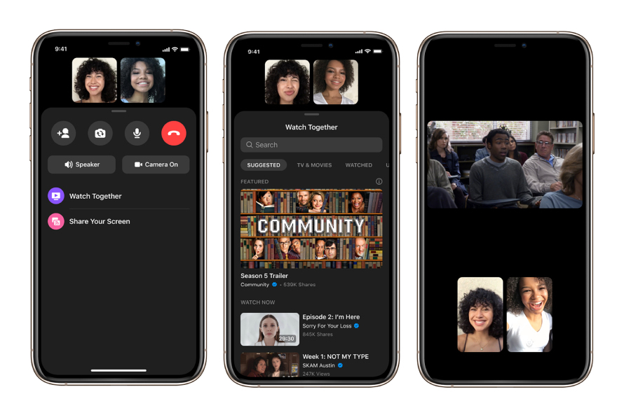 페이스북 메신저에 추가되는 ‘함께 보기(Watch Together)’ 기능을 활용하면, 친구나 가족끼리 영상 통화를 하면서, 페이스북 와치(Watch)에 있는 동영상을 함께 감상할 수 있다. (사진:Facebook)