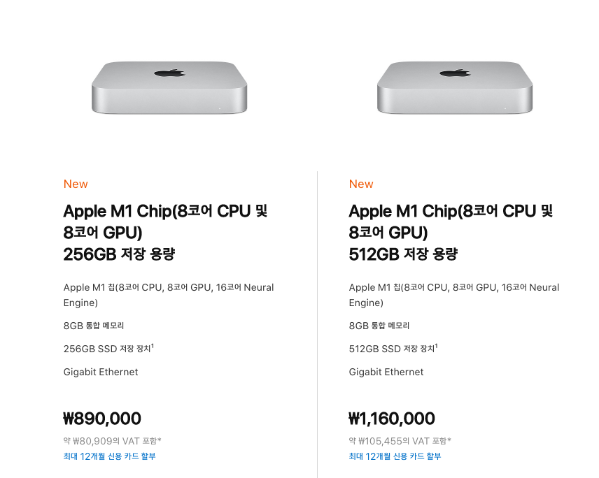 맥 미니 : 애플 M1, 8GB 메모리, 256GB SSD 탑재하고 89만원부터