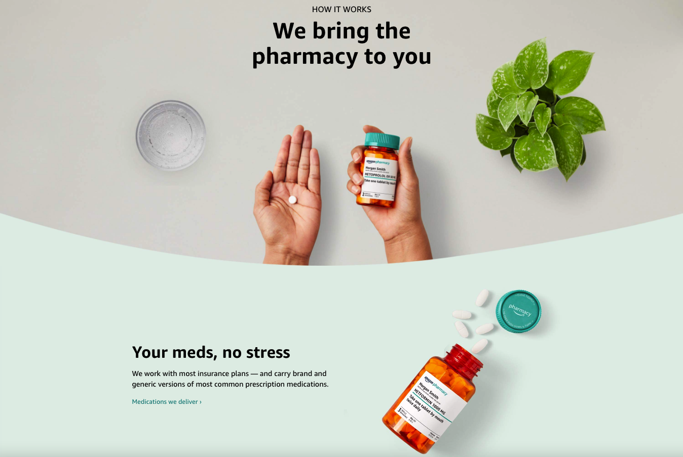 아마존 약국의 서비스 방식과 구조는 간단하다. 의료 서비스자 제공자가 발행한 처방전을 받아, 필요한 약품을 고객에게 택배로 배송해주는 서비스다. 중요한 점은 '처방이 필요한 약'을 배송해준다는 것으로, 개인의 보험 정보까지 연동해 보험처리까지 받을 수 있다. 특히 아마존 유료 회원인 프라임 회원에게는 처방 약 할인과 2일 안에 처방받은 약을 전달하는 무료 배송 서비스를 제공한다.