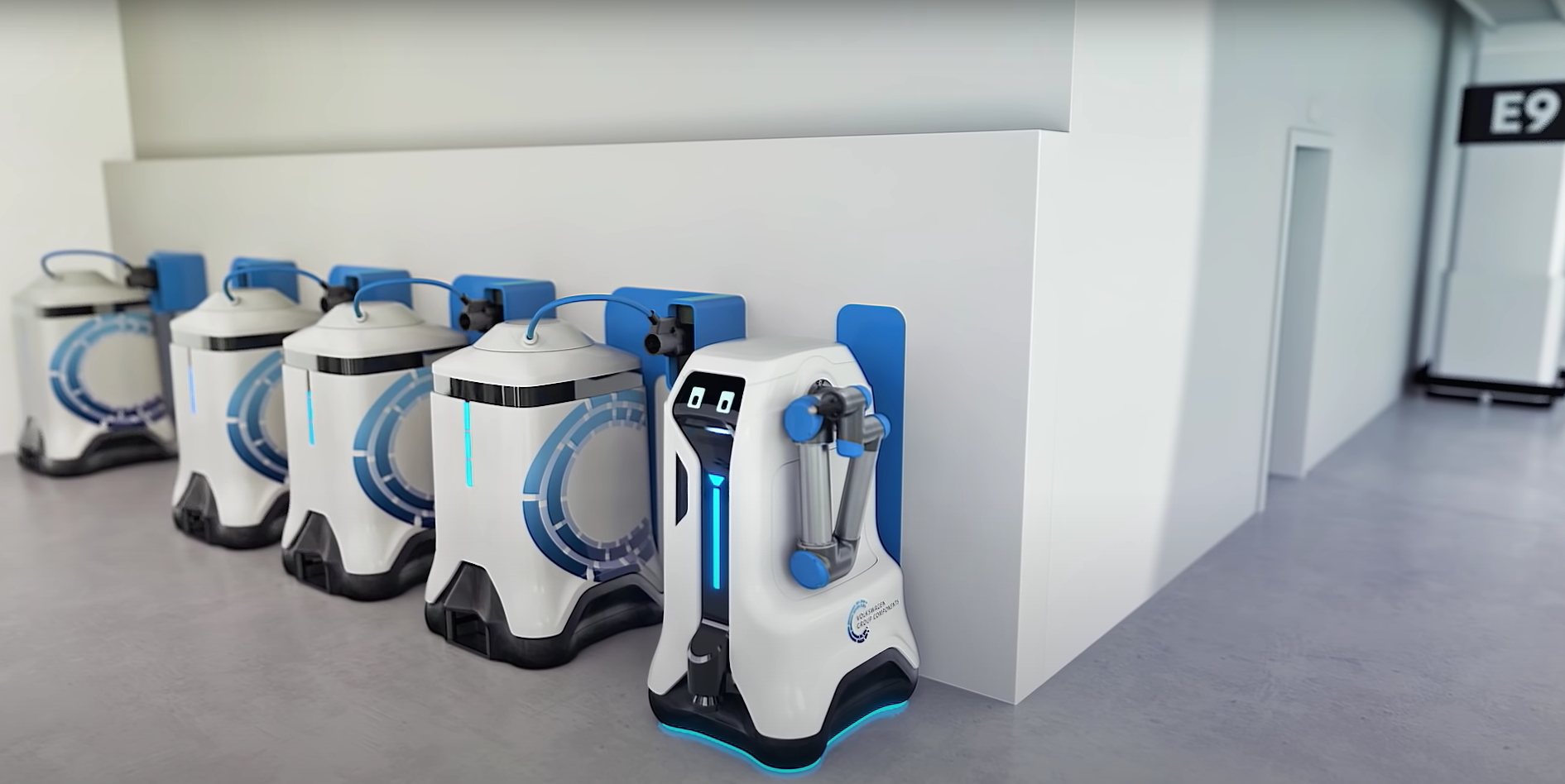 모바일 충전 로봇 시스템은 로봇과 트레일러로 구성된다. 트레일러에는 배터리가 탑재되어 있고, 대기 상태에서는 트레일러를 충전 스테이션에 연결해 배터리를 충전한다. 로봇과 트레일러는 주차장 일정 구역에 전용 구역을 만들어 충전과 대기할 수 있도록 설계했다. 설치 가능한 공간에 비례해 트레일러와 로봇의 수를 확장할 수 있기 때문에 주차장 규모에 맞게 운영하면 된다.