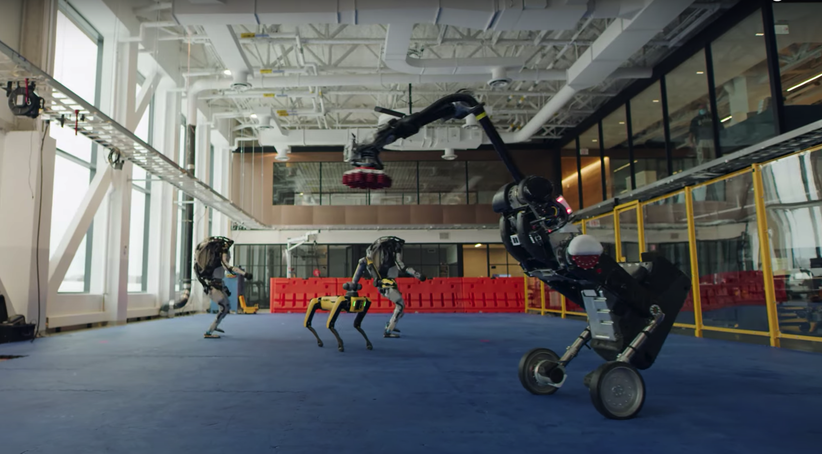 한 해를 보내고 새해를 맞이하는 로봇들의 축하 공연을 보스턴 다이내믹스가 촬영해 유튜브에 공개한 것이다. 아틀라스는 사람을 그대로 빼 닮은 휴머노이드, 스폿은 네 발로 움직여 로봇 개라는 별명을 얻었고, 덩치 큰 새를 연상하게 하는 핸들은 공장이나 창고에서 활약하는 박스 운반용 로봇이다.