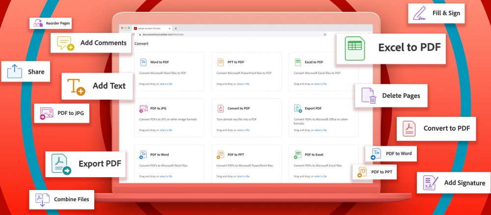 아크로뱃 웹(Acrobat Web)은 이러한 아크로뱃을 온라인으로 제공하는 서비스다. PC나 노트북 그리고 스마트폰 폰에 아크로뱃 앱을 설치하지 않고, 웹 브라우저를 열고 파일을 드래그 앤 드롭(Darg and Drop)하는 것만으로 원하는 기능을 사용할 수 있다. 물론 이러한 웹 기반 PDF 관련 서비스는 이미 다양한 업체와 서비스에서 아크로뱃 웹이 등장하기 이전부터 제공해 왔다.