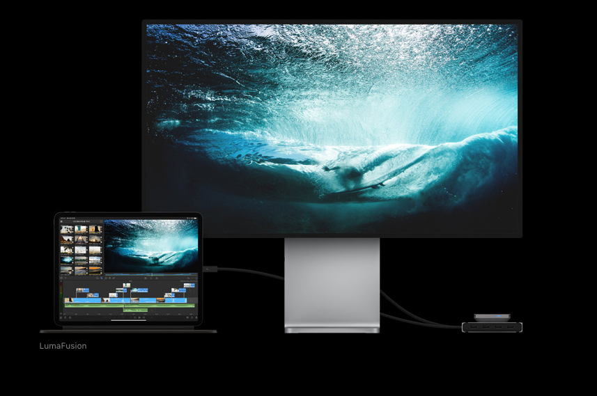 애플 프로디스플레이 XDR을 케이블로 연결하면 6K 해상도로 5세대 아이패드 프로의 화면을 출력할 수 있다. 고해상도를 지원하는 외장형 모니터를 연결하기 위해 이제 맥북만을 고집할 필요가 없어졌다. (사진 : Apple)