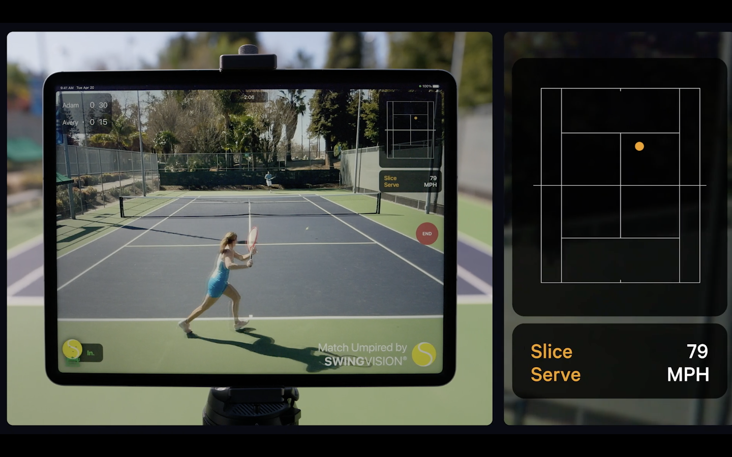 라이다 스캐너와 고화질 카메라를 활용하면, 테니스공의 위치를 감지해 스코어를 계산하는 앱을 만들 수도 있다. (사진:Apple)