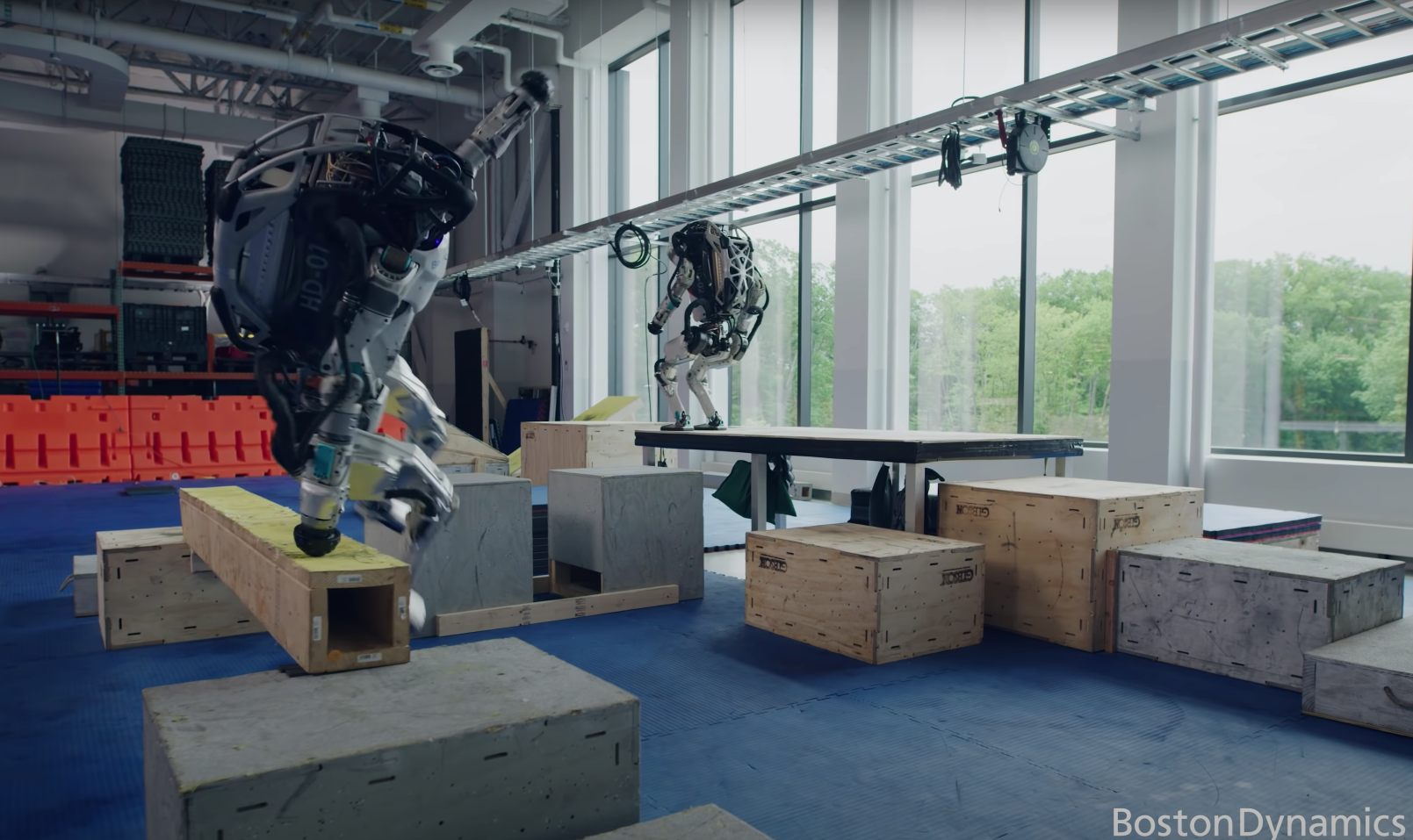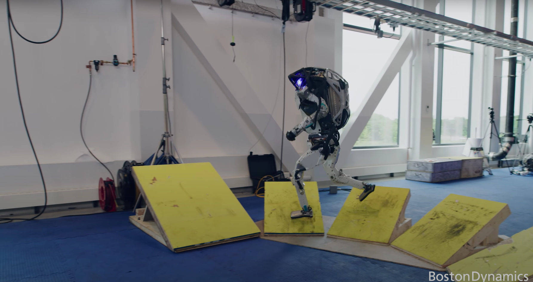 보스턴 다이내믹스(Boston Dynamics)가 복잡한 파쿠르 코스(parkour courses)를 통과하는 휴머노이드 로봇인 아틀라스 영상을 공개했다. 계단 오르기, 건너뛰기, 외나무다리 건너기, 경사면 돌면서 걷기 등으로 구성된 장애물 코스를, 두 대의 아틀라스가 움직이며 완주한 후 백플립(backflip)으로 완료하는 약 1분 분량의 영상이다.