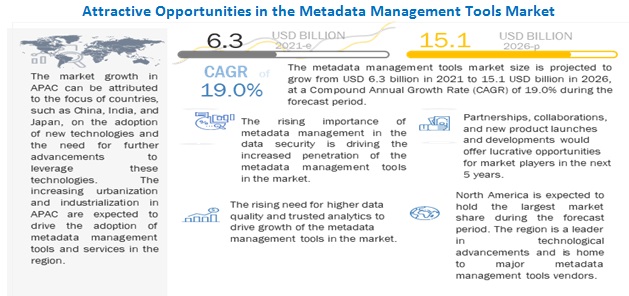 메타데이터 관리 도구 시장 규모가 2021년부터 2026년까지 연평균 19.0%의 복합 성장률을 기록할 전망이다. 2021년 63억 달러로 예상되는 시장 규모는 2026년이 되면 151억 달러로 성장할 것으로 추정된다. 중앙 집중식 데이터 관리의 중요성 증가, 데이터 보안에서 메타데이터 관리의 중요성 증가, 더 높은 데이터 품질 및 신뢰할 수 있는 분석에 대한 요구 증가가 시장을 견인하는 주요 요인으로 지목됐다.