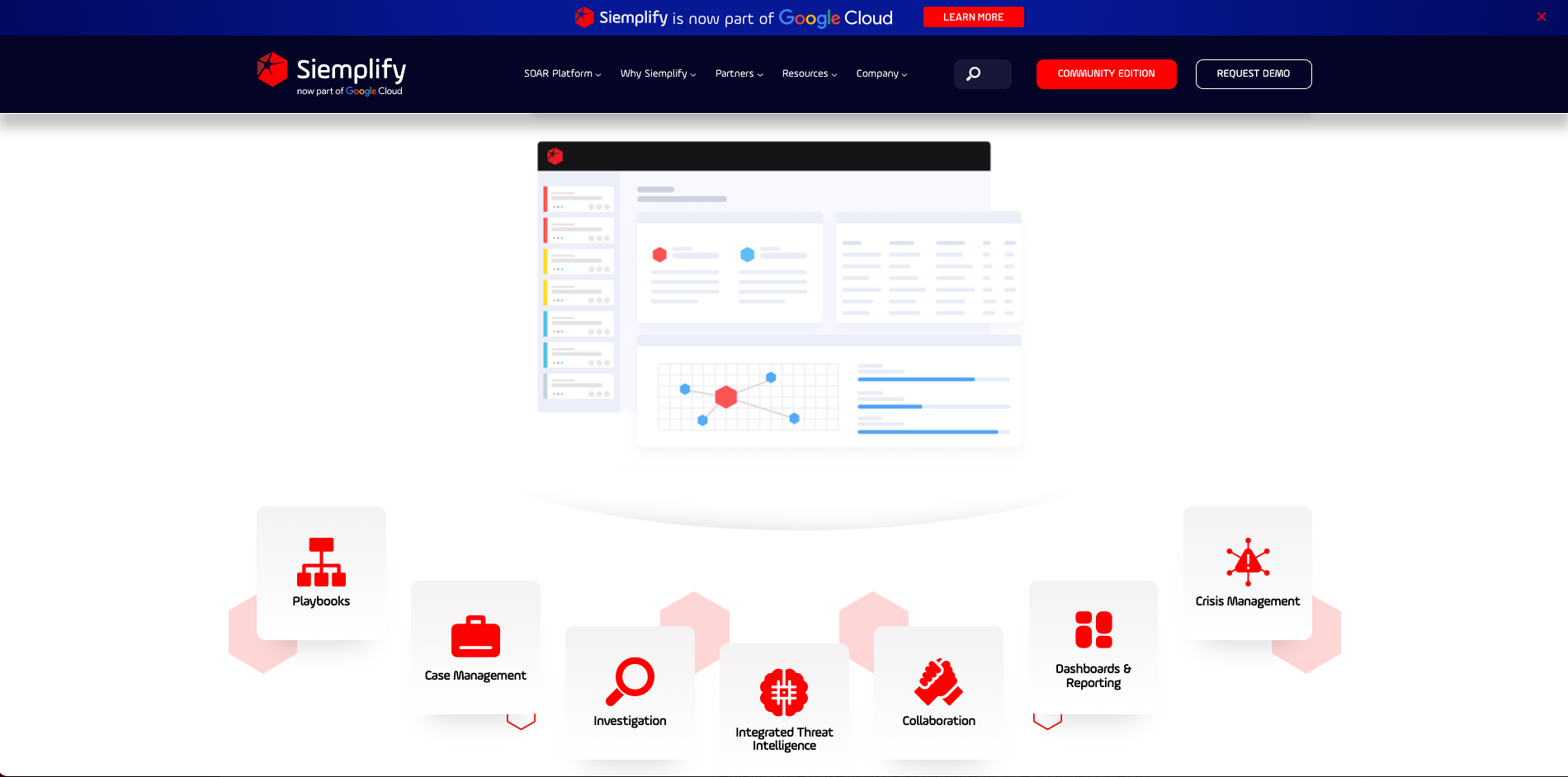 구글이 인수한 시엠플리파이는 SOAR 플팻폼 전문 업체로, 구를 클라우드에 합류한 후 크로니클 운영에 통합된다. (자료:siemplify)