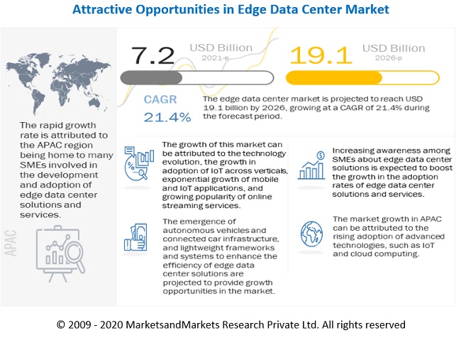 마켓앤마켓(MarketandMarket)이 '2026년까지 전 세계 엣지 데이터 센터 시장(Edge Data Center Market - Global Forecast to 2026)' 보고서를 발표했다. 보고서는 엣지 데이터 시장을 구성 요소(솔루션, 서비스), 솔루션(DCIM, 분석, 전원, 냉각, 네트워킹 장비), 서비스(통합 및 구현, 컨설팅 및 관리), 시설 규모(중소형, 대규모), 업종 및 지역 등으로 구분해 조사와 분석을 진행했다,.