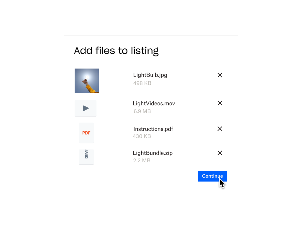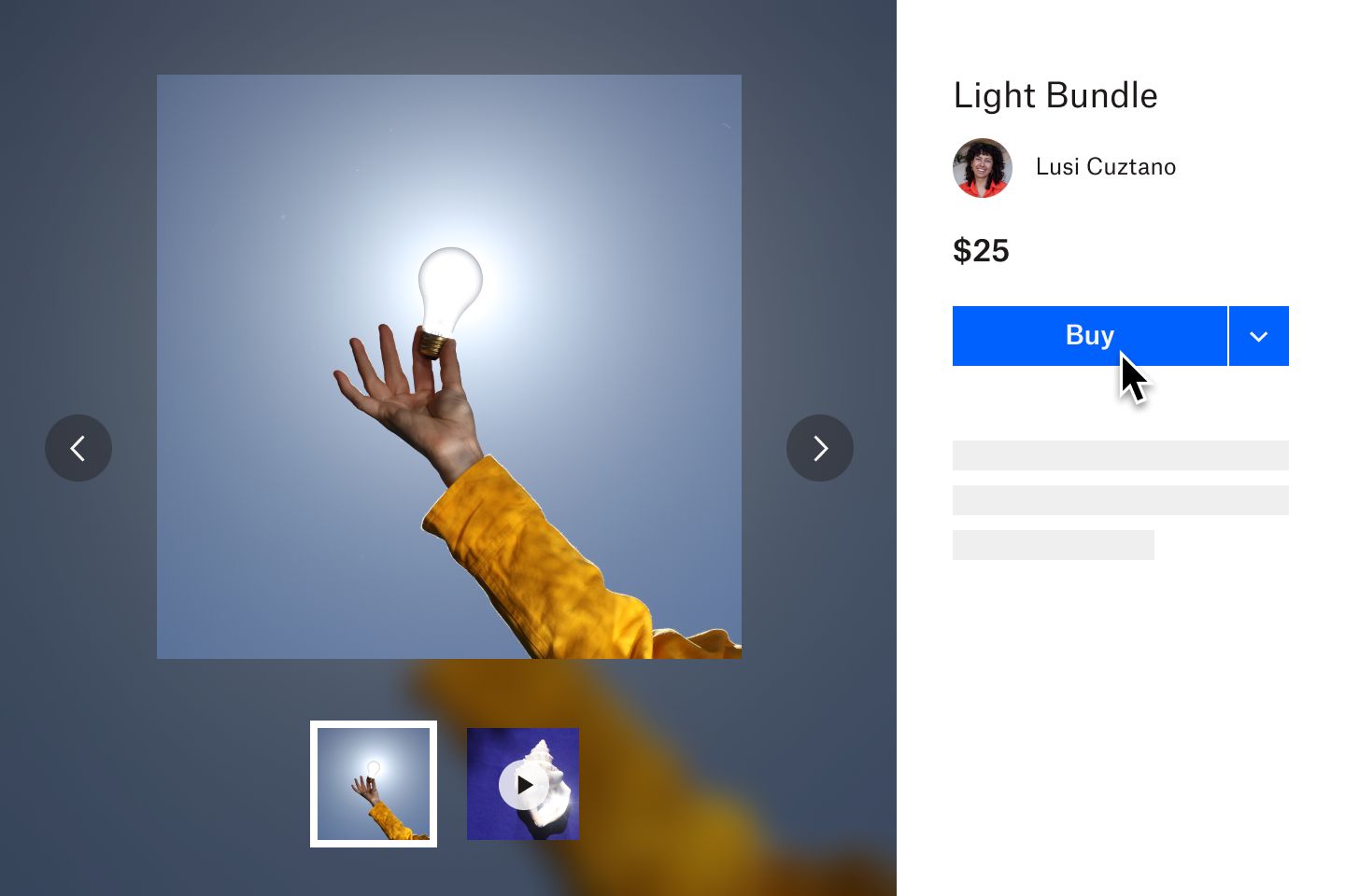드롭박스에 저장되어 있는 파일 중에서 판매할 대상을 선택하고, 섬네일 이미지, 동영상 및 오디오 미리 보기 화면을 설정하고, 가격만 결정하면 끝이다. 이렇게 세 단계의 과정만 마치면, 바로 해당 파일을 판매할 수 있는 상품 페이지가 개설된다. 간편하고 빠르고 쉽게, 누구나 온라인 디지털 파일을 판매하는 공간을 개설할 수 있는 셈이다.