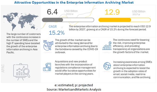 이러한 이유로 "기업 정보 아카이빙의 필요성이 증가하고 있다. 대기업은 사용할 수 있는 디지털 기업 정보의 큰 풀(Large Pool)을 고려하여 기업 정보를 관리하기 위해 다양한 고급 솔루션을 채택하고 있다. 그러나 SMB는 예산 제약과 기업 정보 아카이빙에 대한 인식 부족으로 인해, 디지털 기업 정보를 수동으로 관리하는 등 전통적이고 시간 소모적인 방법을 고수하고 있다"고 시장 상황을 전했다.