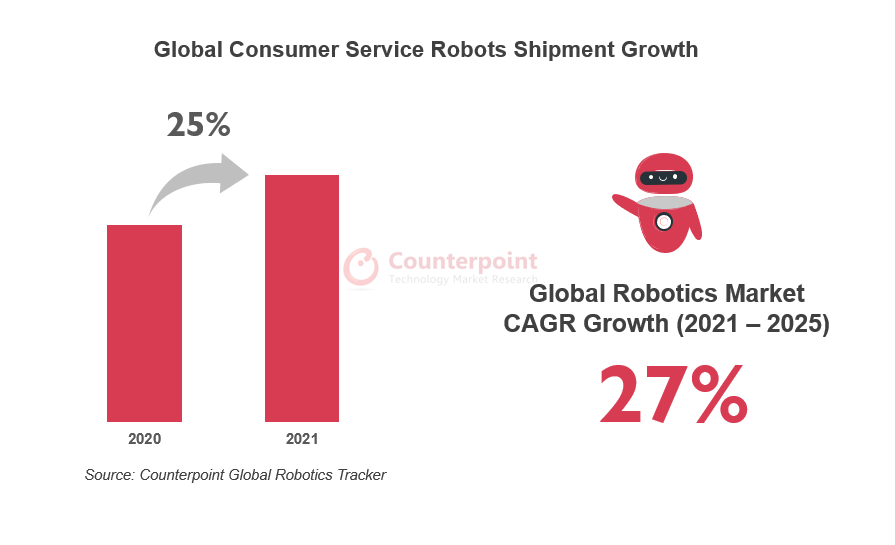 카운터포인트의 리서치 부사장인 피터 리처드슨(Peter Richardson)은 "우리는 개인 및 교육용 로봇의 시장 기회가 2025년까지 45억 달러를 초과할 것으로 예상하며, 많은 국가의 인구 고령화와 STEM(과학, 기술, 공학 및 수학) 기반 학습에 대한 관심 증가로 인해 2025년 이후에도 상당한 추가 성장이 예상된다. 이 두 가지 사용 사례를 위해 개발된 로봇에는 다른 신흥 부문에도 광범위하게 적용될 수 있는 핵심 기술 세트가 있을 것이다"라고 시장을 전망했다.