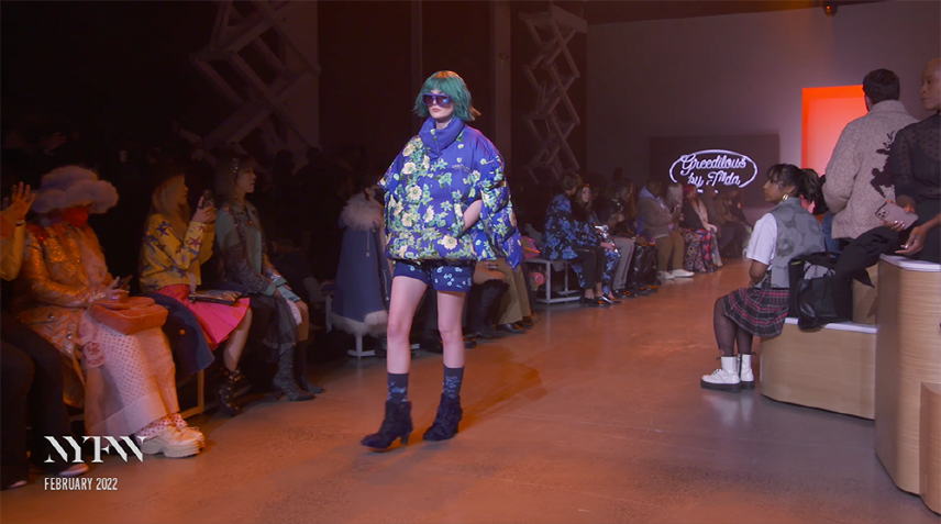 틸다와 디자이너의 협업으로 탄생한 의상들이 2022년 2월 14일 뉴옥에서 열린 '2022 F/W 뉴욕 패션 위크'에서 선보이기도 했다. 디자이너가 틸다에게 '금성에 꽂이 피면 어떤 모습일까?'라는 질문을 하고, 이를 기반으로 다양한 이미지를 창작했다. 디자이너는 이렇게 틸다가 만든 이미지와 패턴을 기반으로 제작한 의상을 패션 쇼에서 선보이는 방식으로 협업을 진행했다.