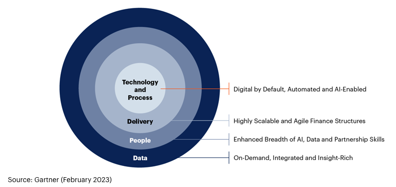미래 재무 업무의 핵심이 될 자율적인 재무는 기본적으로 디지털을 기반으로 한 자동화 및 AI 지원 기술과 프로세스가 중심이 되고, 이를 확장성이 뛰어나고 민첩한 재무 구조가 뒷받침하는 구조가 될 전망이다. 아울러 향상된 AI와 데이터 및 파트너십 기술을 다루는 사람과 주문형, 통합 및 풍부한 통찰이라는 요소가 결합된 데이터가 자율 재무를 구성할 것으로 가트너는 예상했다.
