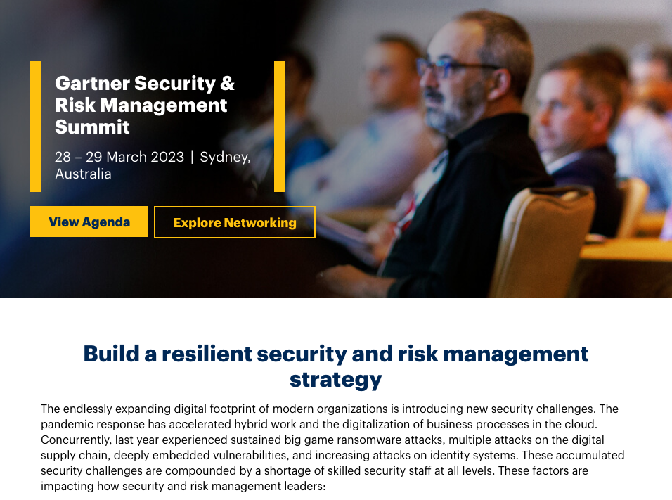 가트너가 2023년 3월 28일부터 29일까지 호주 시드니에서 '가트너 보안 및 위험 관리 서밋(Gartner Security & Risk Management Summit)'을 개최하고, 기업이 사이버 보안과 위험 관리에 대해 주목해야 할 주요 변화와 그에 따른 전략을 공개했다. 가트너는 효과적이고 지속 가능한 사이버 보안 프로그램을 구축하려는 모든 CISO가 이러한 예측을 고려해야 한다고 강조했다. 다음은 가트너가 밝힌 8가지 사이버 보안 예측 전문이다.