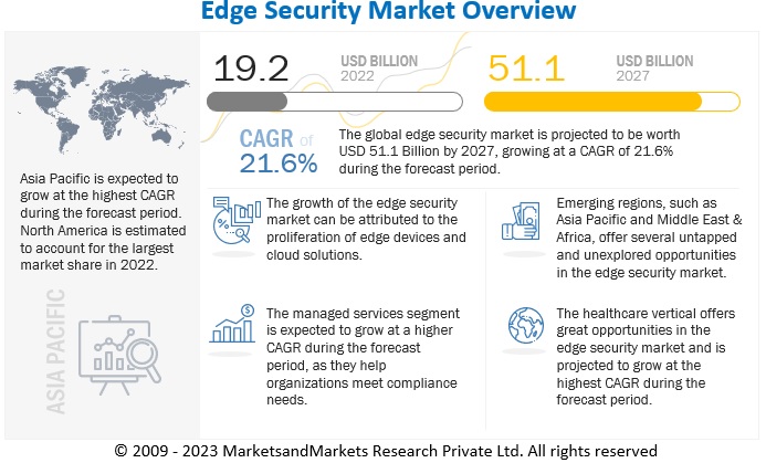 엣지 보안 시장이 2027년까지 21.6%의 연간 성장률을 기록하며 고속 성장세를 이어갈 전망이다. 2022년 192억 달러였던 시장 규모는 2027년 511억 달러로 확대될 것으로 예상된다. 다양한 분야에서 엣지 장치 수요가 증가하면서 엔트포인트 보호를 위한 장치 보안 필요성이 확대되면서 엣지 보안 솔루션 및 서비스에 대한 수요 증가를 견인하고 있다.
