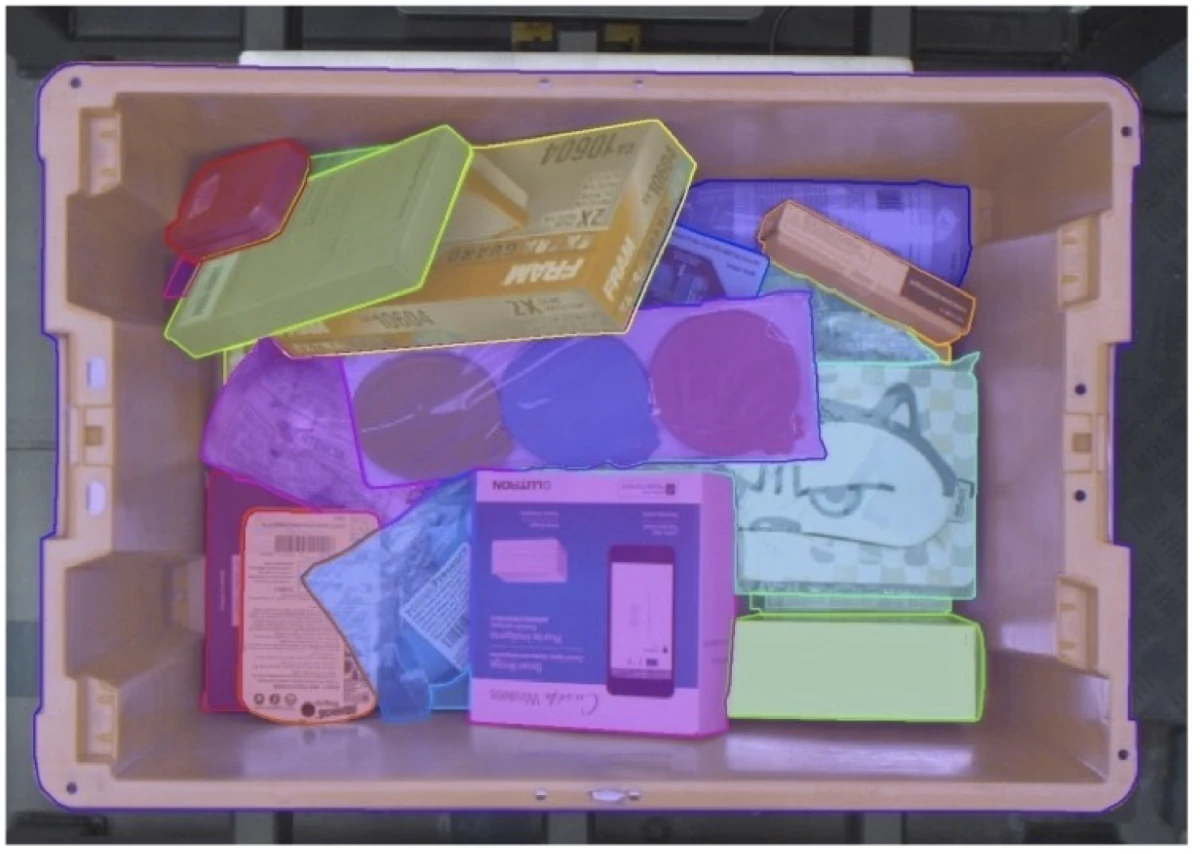 객체 분할 데이터 세트에는 5만 개 이상의 이미지가 포함되어 있으며, 이미지당 평균 약 10.5개에 달하는 수동 객체 분할이 1개에서 50개까지 포함되어 있다. 투명하거나 반사되는 물체가 다양한 모습으로 복잡하게 섞여 있기 때문에 이를 구분하는 것은 상당히 어렵고 까다롭다. 객체 식별 데이터 세트에는 23만 5,000개 이상의 레이블이 지정된 '선택 작업(pick activities)'이 포함되어 있다.