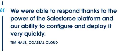 세일즈포스는 "특히 공공 부문의 많은 비상 대응 관리는 여전히 구식 기술에 의존하고 있다. 재난의 규모와 빈도가 증가함에 따라 모든 조직은 효과적으로 구호를 제공하기 위해 강력한 디지털 도구가 필요하다는 것을 깨닫고 있다. 기술을 소싱할 때 조직은 여러 이해 관계자가 어디에서나 고품질 데이터에 액세스 할 수 있고, 구성원에게 대규모로 서비스를 제공하고, 변화하는 조건에 빠르게 적응할 수 있는 플랫폼을 찾아야 한다"고 강조한다.