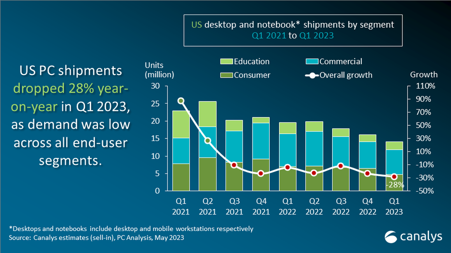 카날리스의 수석 애널리스트인 이산 더트(Ishan Dutt)는 "여러 요인이 복합적으로 작용하여 2023년 초에 미국 PC 시장이 바닥을 찍은 것으로 예상된다. 연말연시 이후 예상되는 계절적 하락과 채널의 재고 조정이 마무리되는 시기가 맞물리면서 PC 판매량이 감소했다. 상업적인 측면에서는 연초 이후 세 차례의 추가 금리 인상을 포함하여 기업들이 계속해서 경제적 압박에 시달리고 있다"고 PC 시장 상황을 전했다.
