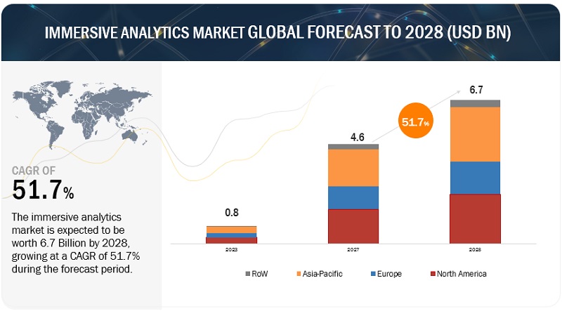 몰입형 분석(Immersive Analytics) 시장이 2023년부터 2028년까지 연간 51.7%의 성장률을 기록할 전망이다. 시장 규모는 2023년 8억 달러에서 2028년 67억 달러가 될 것으로 예상된다. 데이터 시각화 도구에 대한 인기와 수요가 높아지는 것이 시장 성장을 이끄는 요인으로 지목됐다. 데이터 시각화 도구는 데이터에서 중요한 추세나 패턴을 빠르게 식별해 의사 결정의 정확성과 신속성을 높일 수 있어 활용 범위가 넓다.