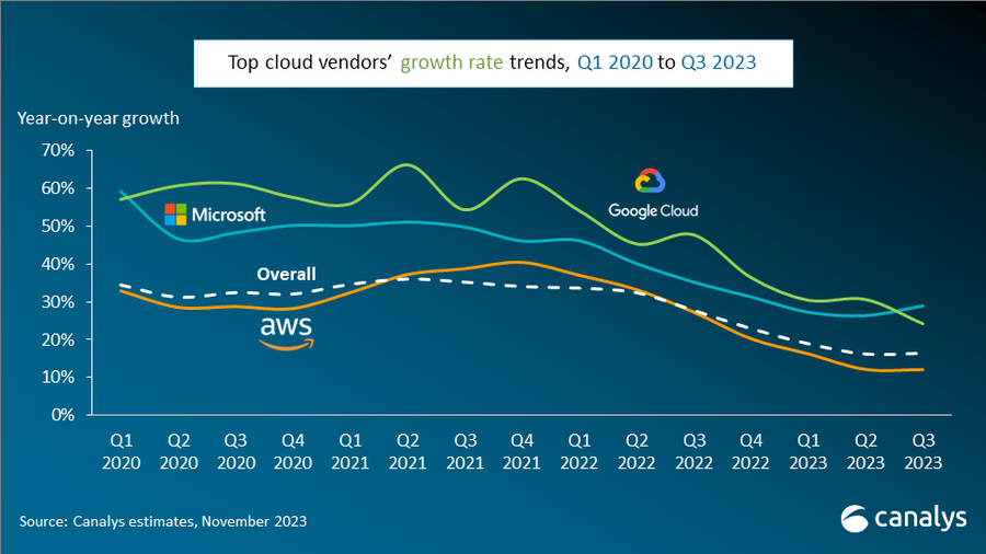 "기업들이 전반적인 IT 지출을 계속 최적화하고 있음에도 불구하고 클라우드 시장은 부분적으로는 AI에 대한 관심 증가에 힘입어 회복의 조짐을 보이기 시작했다. 광범위한 시장이 비용 절감 행동의 영향과 계속 씨름하고 있지만, 주요 클라우드 공급업체의 성과는 시장 역학 관계의 변화를 암시한다."