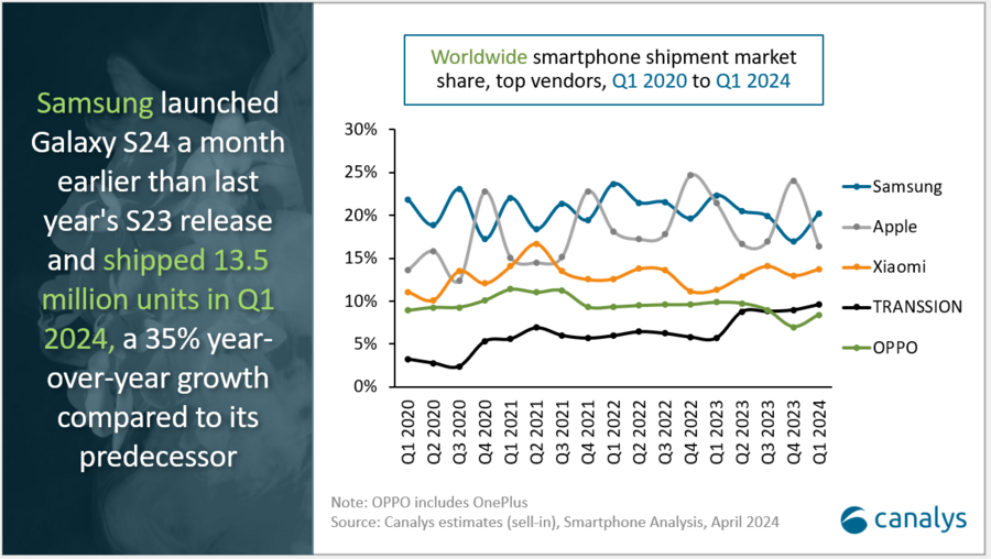 | 2024년 1분기 스마트폰 시장 11% 성장…카날리스, 삼성 시장 점유율 1위 탈환 (0) | 2024.04.18 |