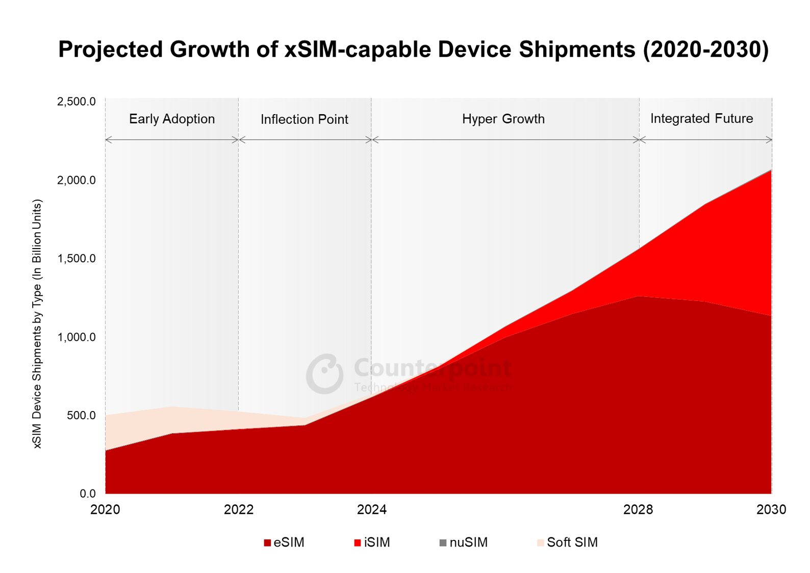 카날리스는 2030년까지 이러한 xSIM이 스마트워치의 70% 이상, 스마트폰의 80% 이상, 커넥티드 카의 90% 이상, 태블릿과 드론은 95% 이상에서 탑재될 것으로 예상했다. 아울러 2030년까지 분야별 시장에서의 xSIM의 연평균 성장률은 XR 장치가 210%, 라우터는 100%, 드론에서는 41%, PC 시장은 36%를 기록할 것으로 예측했다.