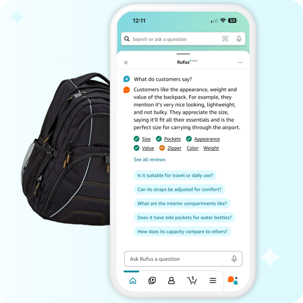 이를 테면 "이 커피 메이커는 세척하고 관리하기 쉽나요?”, "이 마스카라는 깨끗한 미용 제품인가요?”, "백팩의 소재는 무엇인가요?”, "고객들은 뭐라고 하나요?”, "최고의 무선 아웃도어 스피커는 무엇인가요?”처럼 다양한 제품 정보를 질문하거나 용도에 적합한 제품을 추천해 줄 것을 고객들은 루퍼스에게 요구했다.