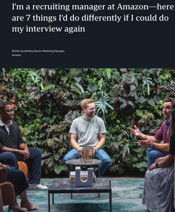 아마존의 마케팅 관리자인 브리트시 번치(Brittany Bunch)가 실제 아마존 직원을 채용하는 면접 과정에서 빈번하게 일어나는 지원자들의 실수 사례를 아마존 블로그에 소개했다. 아마존에 입사를 원한다면 반드시 알아야 하고, 다른 기업에 취업을 원하는 경우라도 도움이 될 내용이다. 채용 인터뷰에 면접관으로 참여해야 하는 경험 없는 관리자들에게도 추천한다.