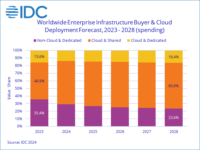 IDC(International Data Corporation)가 ‘전 세계 분기별 엔터프라이즈 인프라스트럭처 트래커(Worldwide Quarterly Enterprise Infrastructure Tracker)’를 발표하고, 2024년 2분기 전용 및 공유 IT 환경(dedicated and shared IT environments)을 포함한 클라우드 배포용 컴퓨팅 및 스토리지 인프라에 대한 지출이 429억 달러에 달했다고 밝혔다.