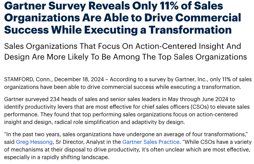 가트너(Gartner)가 2024년 5월부터 6월까지 영업 분야의 리더와 임원을 대상으로 진행한 CSO(Chief Sales Officers)가 영업 성과를 높이는 데 가장 효과적인 생산성 수단을 파악하기 위한 설문 조사 결과를 발표했다. 이를 통해 최고의 영업 조직이 다른 조직과 다른 세 가지 속성이 있다는 것을 발견했다.