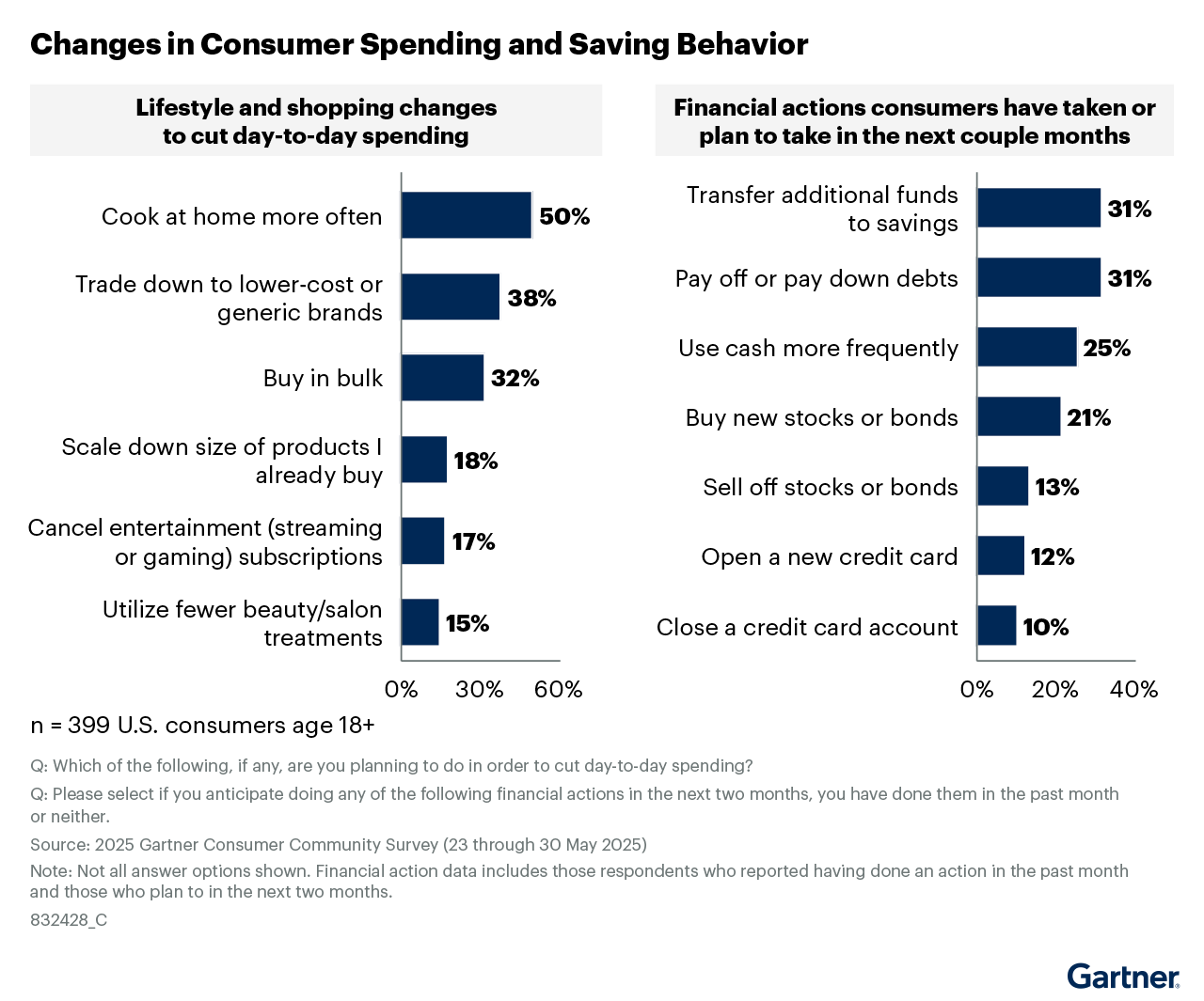가트너(Gartner)가 18세 이상의 미국 소비자 399명을 대상으로 2025년 5월에 실시한 ‘가트너 소비자 커뮤티니’ 설문 조사 결과를 발표했다. 경기 침체 속에서 달라지고 있는 소비 패턴과 소비자 행동을 반영해서 새로운 마케팅 전략을 수립해야 한다고 가트너는 강조한다.