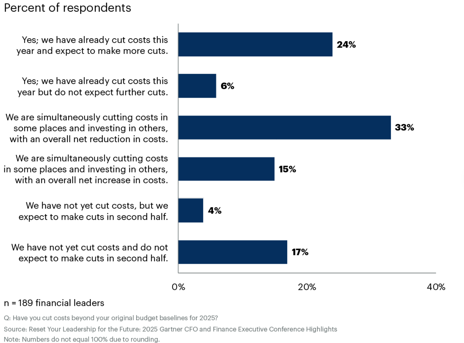 '선택과 집중'이라는 말이 이토록 절실하게 느껴지는 시기도 드물다. 조사에 참여한 재무 리더 중 67%가 현재 비용을 절감 중이거나, 이미 절감을 완료했거나, 2025년 하반기에 절감을 계획하고 있다고 답했다. 이는 기업들이 전방위적으로 허리띠를 졸라매고 있음을 시사한다. 하지만 흥미로운 점은 이런 비용 절감이 무차별적이지 않다는 것이다.