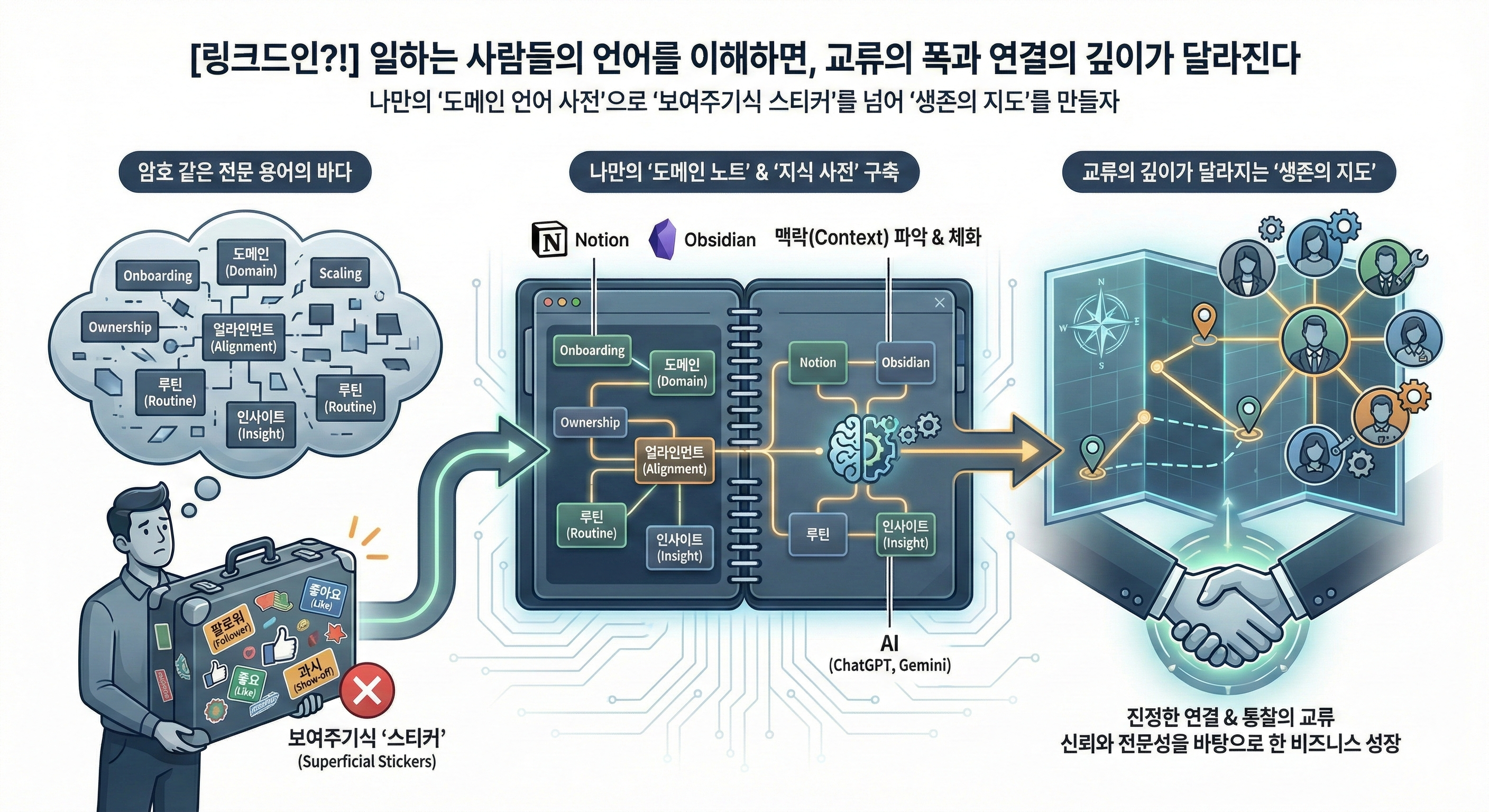 링크드인은 단순한 SNS가 아니라 지식, 경험, 판단, 통찰을 교류하는 비즈니스 공간이다. 이 공간에서는 특정 용어를 얼마나 정확한 맥락에서 사용하느냐가 신뢰도와 전문성을 좌우한다. 반대로 그런 용어를 얼마나 제대로 이해하는지가 습득과 판단 그리고 교류에 적지 않은 영향을 준다.
