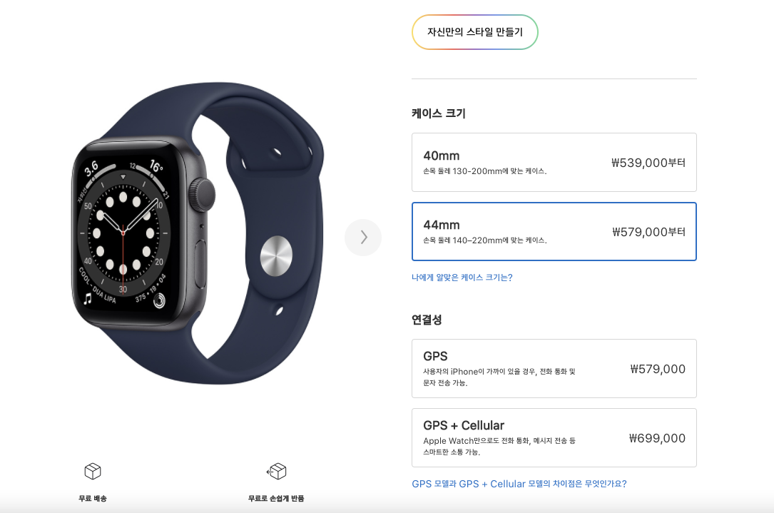 ‘시작한다’고 하는 이유는, 케이스 소재나 밴드 등의 선택 옵션에 따라 가격이 달라지기 때문이다. 케이스나 밴드의 몸값은 애플워치 본체 가격보다 비싼 경우도 적지 않다. 여기에 추가로 애플케어플러스(AppleCare+)를 구매하면, 최대 2년간 기술 지원과 우발적인 손상에 대한 애프터 서비스를 받을 수 있다. 애플케어플러스 가격은 애플워치 3와 SE는 6만 9,000원, 애플워치 6는 10만 9,000원이다.