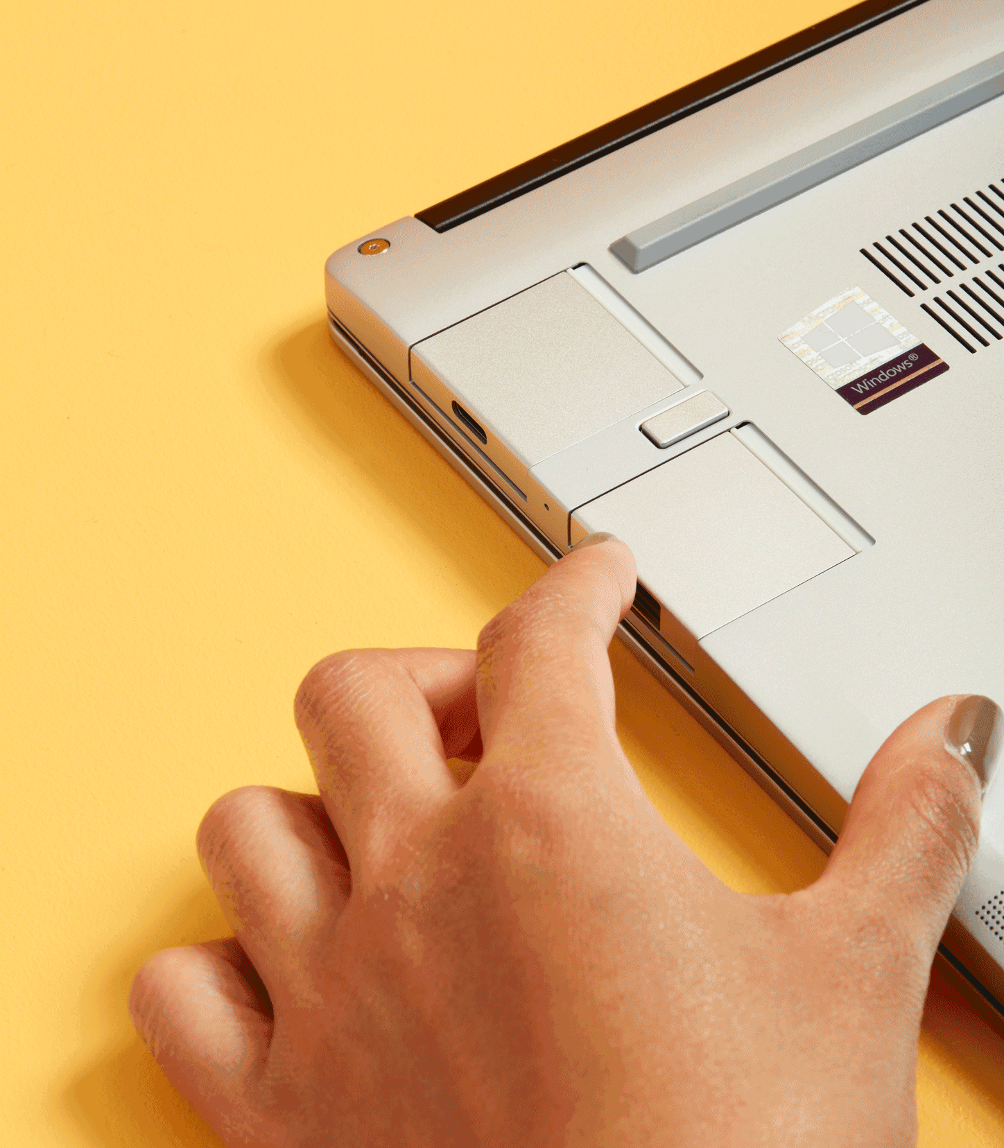 특히 바닥에 장착하는 모듈형 확장 카드는 한 번에 4개까지 사용할 수 있으며, 250GB 또는 1TB 용량의 스토리지 모듈, 마이크로 SD 확장 카드, USB-C 확장 카드, 디스플레이포트(DIsplayPort) 확장 카드, HDMI 확장 카드, USB-A 확장 카드 등을 지원한다. 따라서 작업 환경이나 필요한 기능에 따라 간편하게 원하는 옵션이나 사용으로 변경 또는 업그레이드할 수 있다.