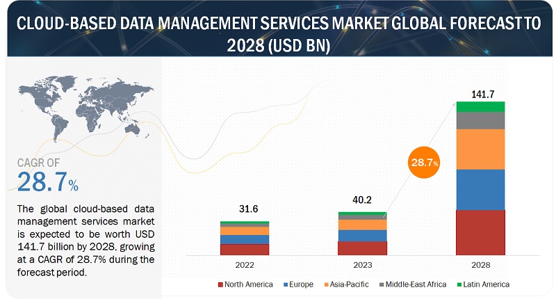 클라우드 기반 데이터 관리 서비스 시장이 2028년까지 연평균 28.7%로 성장할 전망이다. 시장 규모는 2023년 402억 달러에서 2028년에는 1,417억 달러로 증가할 것으로 예상된다. 운영 간소화, 데이터 보안 강화, 원격 액세스 용이성, 하드웨어와 인프라에 대한 막대한 초기 투자 비용 절감 필요성이 클라우드 기반 데이터 관리 서비스를 도입하는 주요 요인으로 지목됐다.